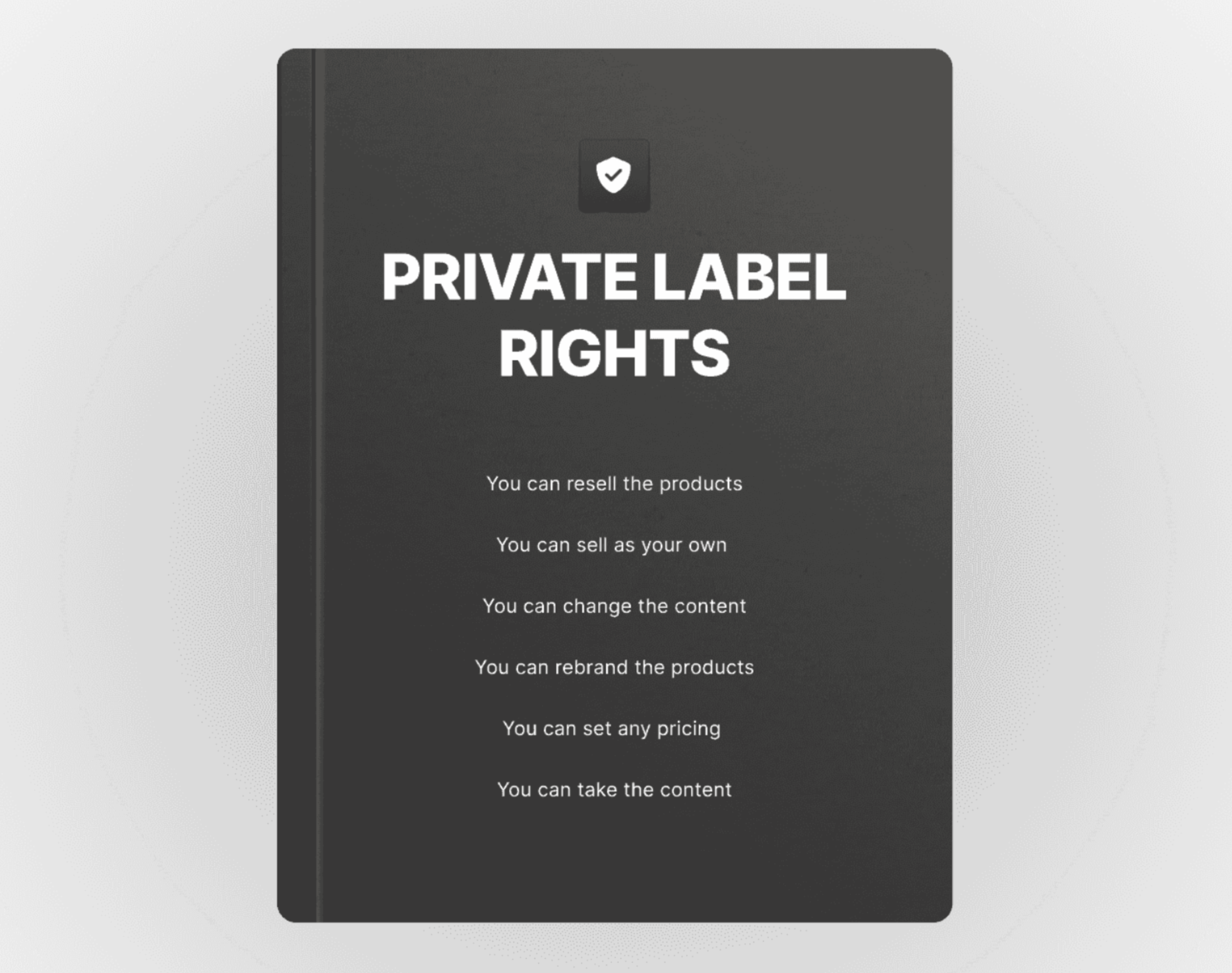 Resell and Rebrand: You have the right to resell and rebrand everything in the Master Library. This means you can treat the content as your own, sell it under your brand, use it across your digital platforms and also change the authors name